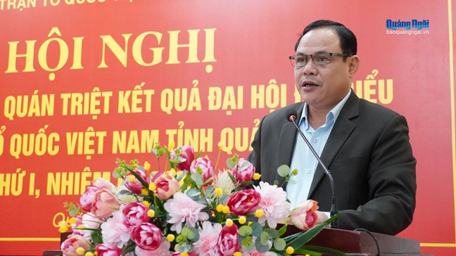 Tại Hội nghị, Phó Chủ tịch Ủy ban MTTQ Việt Nam tỉnh Quảng Ngãi Hồ Ngọc Thịnh báo cáo kết quả Đại hội đại biểu Mặt trận Tổ quốc Việt Nam tỉnh Quảng Ngãi lần thứ I, nhiệm kỳ 2025 - 2030. Theo đó, Đại hội đại biểu MTTQ Việt Nam tỉnh Quảng Ngãi lần thứ I diễn ra trong 02 ngày 17 - 18/11 tại Trung tâm Hội nghị và Triển lãm tỉnh Quảng Ngãi. Tham dự Đại hội có 287 đại biểu chính thức đại diện cho các tầng lớp nhân dân, dân tộc, tôn giáo trong tỉnh.