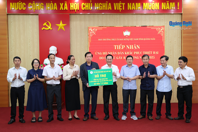 (Mặt trận) - Sáng 5/12, Ủy ban MTTQ Việt Nam tỉnh đã tổ chức buổi tiếp nhận ủng hộ nhân dân tỉnh Quảng Ngãi khắc phục thiệt hại do bão lũ gây ra trong năm 2025. Phó Chủ tịch Ủy ban MTTQ Việt Nam tỉnh Nguyễn Tấn Lâm dự và chủ trì buổi tiếp nhận.