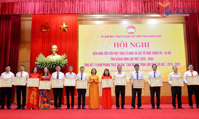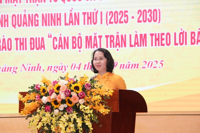 (Mặt trận) - Sáng 4/9, Ủy ban MTTQ Việt Nam tỉnh Quảng Ninh tổ chức Hội nghị điển hình tiên tiến MTTQ Việt Nam tỉnh và các tổ chức chính trị - xã hội tỉnh Quảng Ninh lần thứ I (2025-2030); tổng kết 15 năm phong trào thi đua “Cán bộ mặt trận làm theo lời Bác” giai đoạn 2010-2025. Bà Trịnh Thị Minh Thanh, Phó Bí thư Thường trực Tỉnh ủy, Chủ tịch HĐND tỉnh dự, chỉ đạo hội nghị.