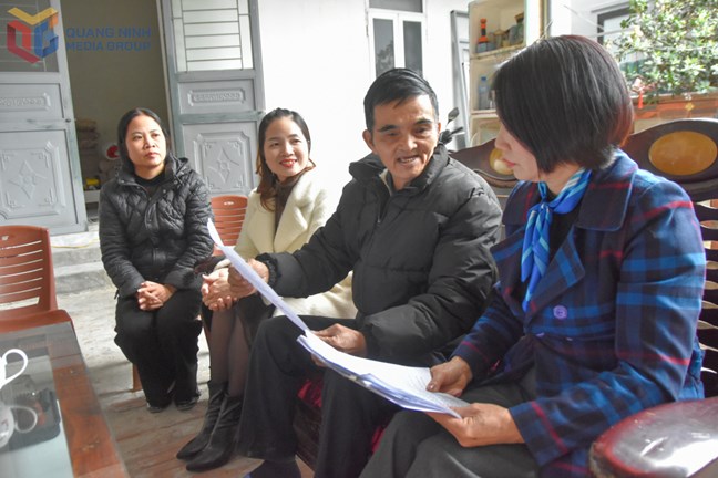 | Ban Công tác Mặt trận khu Cẩm Trung 5B, phường Cẩm Phả, trực tiếp tuyên truyền pháp luật về bầu cử tại hộ dân. |