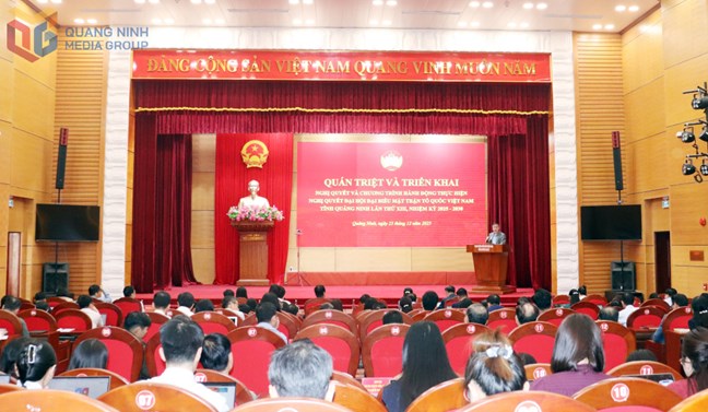 Chiều cùng ngày, Ủy ban MTTQ Việt Nam tỉnh đã tổ chức hội nghị trực tiếp kết hợp trực tuyến quán triệt Nghị quyết và triển khai chương trình hành động thực hiện Nghị quyết Đại hội đại biểu MTTQ và các tổ chức chính trị - xã hội tỉnh, nhiệm kỳ 2025-2030. Trong đó, nhấn mạnh tinh thần và mục tiêu tổng quát của Nghị quyết Đại hội, những điểm mới và một số yêu cầu đặt ra đối với đội ngũ cán bộ Mặt trận các cấp trong tổ chức thực hiện.