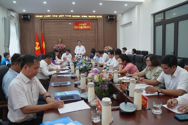 Báo cáo tại buổi làm việc, ông Lê Anh Tú, Bí thư Đảng ủy đặc khu Côn Đảo cho biết, địa phương đang triển khai sắp xếp tổ chức bộ máy hệ thống chính trị gắn với xây dựng chính quyền địa phương hai cấp; chuẩn bị tổ chức đại hội Đảng các cấp; vận hành bộ máy chính quyền và các dịch vụ hành chính công phục vụ người dân. Công tác kiện toàn tổ chức bộ máy Ủy ban Mặt trận Tổ quốc Việt Nam và các đoàn thể chính trị - xã hội của đặc khu cũng đang được triển khai, phục vụ Đại hội Mặt trận nhiệm kỳ tới.