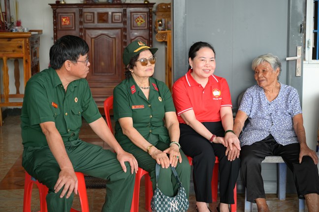 | Ủy viên Ban Thường vụ Tỉnh ủy, Phó Chủ tịch Thường trực Ủy ban MTTQ Việt Nam tỉnh Nguyễn Thị Thu Trinh đến thăm Bà mẹ Việt Nam Anh hùng Phan Thị Hợi |