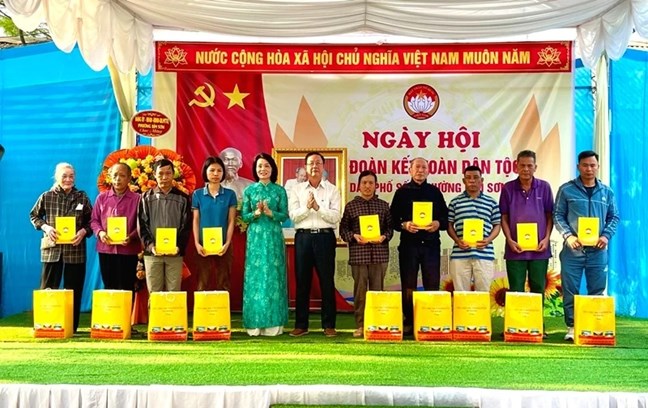 Tại ngày hội, Phó Trưởng Ban Tổ chức Tỉnh ủy Đỗ Thị Toán đã trao tặng cán bộ, Nhân dân TDP số 8 bức ảnh “Bác Hồ với bác Tôn” - biểu tượng cao đẹp của tinh thần đại đoàn kết toàn dân tộc; trao 10 suất quà cho các gia đình chính sách, hộ có hoàn cảnh đặc biệt khó khăn trên địa bàn; trao quà và 80 triệu đồng kinh phí hỗ trợ xây dựng nhà Đại đoàn kết cho gia đình ông Trần Văn Sáng, hộ nghèo ở TDP Phú Vinh.