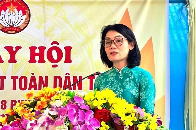 | Phó Chủ tịch Ủy ban MTTQ Việt Nam tỉnh Nguyễn Thị Phương phát biểu tại ngày hội |