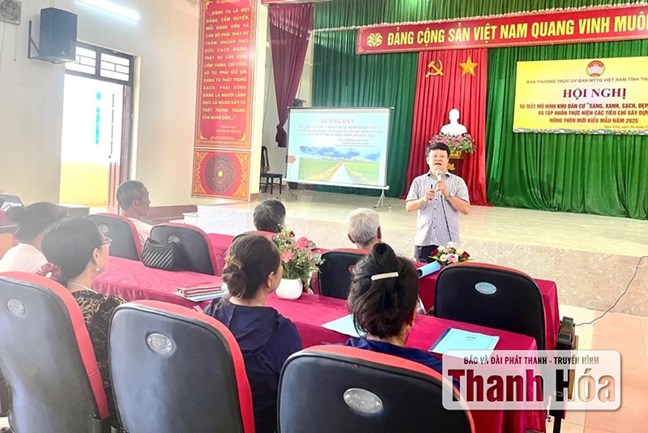 (Mặt trận) - Sáng 4/9, Ban Thường trực Ủy ban MTTQ tỉnh Thanh Hóa đã tổ chức hội nghị ra mắt mô hình Khu dân cư (KDC) “Sáng, xanh, sạch, đẹp, an toàn” và tập huấn thực hiện các tiêu chí xây dựng nông thôn mới (XDNTM) kiểu mẫu năm 2025 tại thôn 2, xã Ngọc Liên.