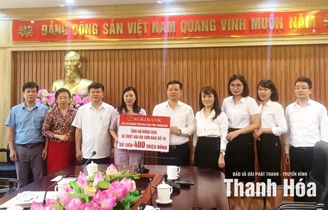 Nhằm sẻ chia với những thiệt hại, mất mát của Nhân dân bị thiệt hại do mưa bão, lũ lụt, chi nhánh Ngân hàng Agribank trên địa bàn tỉnh Thanh Hóa ủng hộ 400 triệu đồng.
