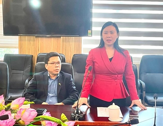 | Phó Chủ tịch Ủy ban MTTQ Việt Nam tỉnh Nguyễn Thị Phương phát biểu tại buổi tiếp nhận hỗ trợ |