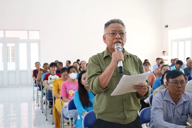 Cử tri xã Bình Lợi nêu các kiến nghị. Ảnh: Cẩm Nương