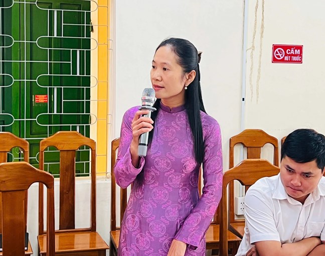 | Đồng chí Trần Thị Thu Điệp - UVBTV Đảng ủy, Chủ tịch Ủy ban MTTQ Việt Nam phường Hương Trà chia sẻ tại Hội nghị |