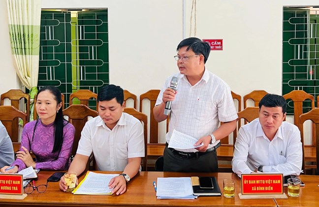 | Đồng chí Trần Viết Tuấn - UVBTV Đảng ủy, Chủ tịch Ủy ban MTTQ Việt Nam xã Bình Điền chia sẻ tại Hội nghị |