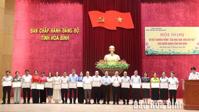Thực hiện Đề án XNT, NDN cho người nghèo giai đoạn 2024 - 2025, qua rà soát, tỉnh Hòa Bình có 3.194 hộ thuộc diện nghèo, cận nghèo, người có công, các đối tượng yếu thế có nhu cầu cấp thiết cần hỗ trợ xây dựng hoặc sửa chữa nhà ở. Cụ thể, có 2.417 hộ cần xây mới, 777 hộ cần sửa chữa nhà. Ngay sau khi Thủ tướng Chính phủ phát động phong trào XNT, NDN trên phạm vi toàn quốc tại huyện Đà Bắc, năm 2024, Ban Thường vụ Tỉnh ủy đã thành lập BCĐ XNT, NDN cấp tỉnh để lãnh đạo, chỉ đạo tổ chức Lễ phát động đợt thi đua cao điểm 450 ngày đêm hoàn thành XNT, NDN cho người nghèo. Tính đến ngày 30/5/2025, toàn tỉnh hoàn thành xây dựng và bàn giao 3.074 căn nhà, đạt 96,2% kế hoạch. Trong đó, xây mới 2.350 nhà, sửa chữa 724 nhà. Còn 120 hộ (chiếm 3,8%) chưa thể triển khai do vướng mắc về đất đai hoặc chưa phù hợp điều kiện làm nhà.