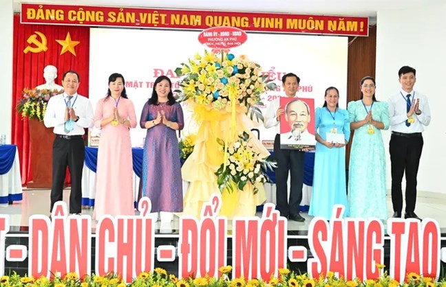 | Đảng ủy - HĐND - UBND phường An Phú tặng hoa chúc mừng đại hội. Ảnh: VIỆT DŨNG |