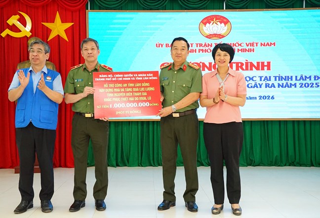 (Mặt trận) - Chiều 11/1, Ủy ban MTTQ Việt Nam TP. Hồ Chí Minh phối hợp với Ủy ban MTTQ Việt Nam tỉnh Lâm Đồng tổ chức chương trình hỗ trợ Nhân dân và các trường học trên địa bàn tỉnh Lâm Đồng khắc phục thiệt hại do mưa lũ gây ra trong năm 2025, với tổng kinh phí 10 tỷ đồng.
