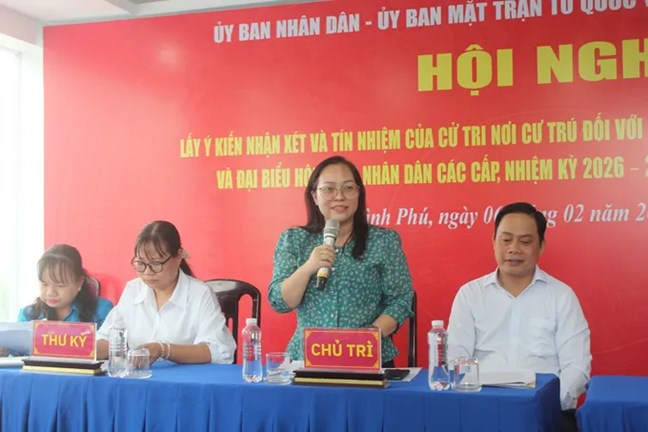 (Mặt trận) - Ngày 6/2/2026, UBND - Ủy ban MTTQ Việt Nam phường Bình Phú (TPHCM) tổ chức hội nghị lấy ý kiến nhận xét và tín nhiệm của cử tri tại nơi cư trú đối với người ứng cử ĐBQH khóa XVI, đại biểu HĐND các cấp nhiệm kỳ 2026-2031.