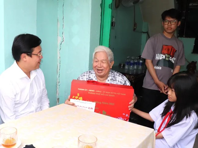 | Ông Lê Quốc Phong thăm hỏi, chúc tết gia đình người dân có hoàn cảnh khó khăn trên địa bàn phường Bình Phú |