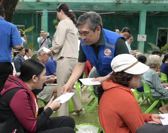 Đi cùng đoàn còn có ông Hoàng Nguyên Dinh, Ủy viên Ban Thường vụ Thành ủy, Phó Trưởng Ban Thường trực Ban Tuyên giáo và Dân vận Thành ủy TP.HCM; ông Nguyễn Khoa Hải, Phó Bí thư Đảng ủy các cơ quan Đảng TP.HCM...
