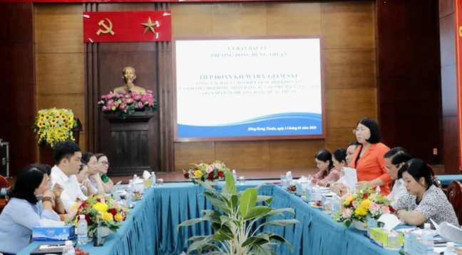 (Mặt trận) - Ngày 14/1, đoàn kiểm tra, giám sát công tác bầu cử đại biểu Quốc hội (ĐBQH) khóa XVI và ĐB HĐND các cấp nhiệm kỳ 2026-2031 của Ủy ban MTTQ Việt Nam TPHCM (đoàn số 3) làm việc với Ban Chỉ đạo bầu cử và Ủy ban bầu cử xã Đông Thạnh, phường Đông Hưng Thuận.