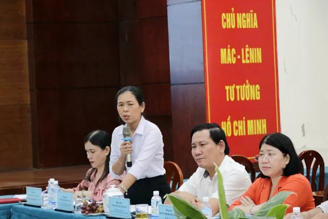 | Phó Chủ tịch UBND phường Đông Hưng Thuận Võ Thị Ngọc Lan trao đổi tại buổi giám sát |