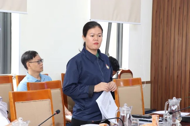 | Trưởng ban Công tác xã hội Dương Thị Huyền Trâm báo cáo. Ảnh: A.Hoàng |