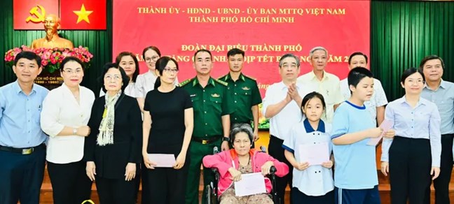 (Mặt trận) - Chiều 8/2/2026, đoàn lãnh đạo TPHCM do ông Nguyễn Phước Lộc, Ủy viên Trung ương Đảng, Phó Bí thư Thành ủy, Chủ tịch Ủy ban MTTQ Việt Nam TPHCM, làm trưởng đoàn đã đi thăm, chúc tết các gia đình tiêu biểu tại phường Bình Tiên và phường Bình Tây, nhân dịp Tết Bính Ngọ 2026.
