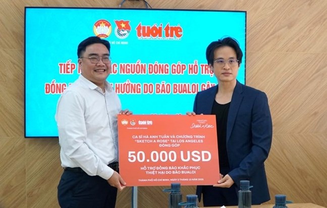 Tại buổi tiếp nhận, ca sĩ Hà Anh Tuấn đã ủng hộ 50.000 USD (hơn 1,3 tỉ đồng - PV) hỗ trợ đồng bào bị ảnh hưởng do bão Bualoi gây ra.