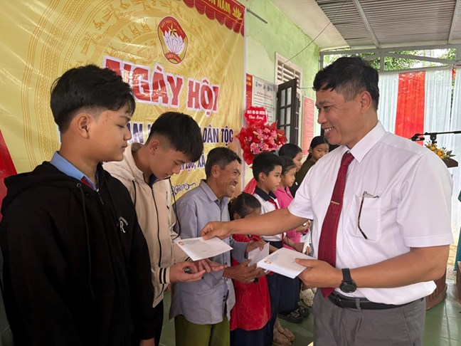 | Ông Phan Xuân Toàn tặng quà người dân thôn Thuận Lộc, xã Nam Đông |
