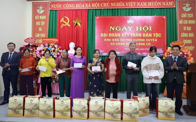 * UVTV Thành ủy, Trưởng ban Nội chính Thành ủy Đặng Ngọc Trân đã đến dự, chung vui với người dân thôn Phú Cường Xuyên, xã Chân Mây - Lăng Cô tại Ngày hội Đại đoàn kết toàn dân tộc.