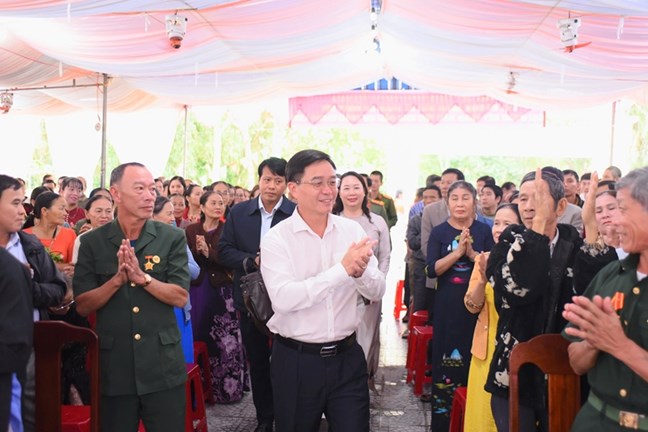 | Ủy viên Trung ương Đảng, Bí thư Thành ủy Nguyễn Đình Trung đến chung vui tại Ngày hội Đại đoàn kết dân tộc cùng Nhân dân thôn Giang Chế, xã Vinh Lộc |