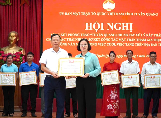 Nhân dịp này, Chủ tịch UBND tỉnh Tuyên Quang tặng Bằng khen cho 17 tập thể; Ủy ban MTTQ Việt Nam tỉnh Tuyên Quang tặng Bằng khen cho 68 tập thể, 14 cá nhân có thành tích tiêu biểu trong triển khai thực hiện Phong trào "Tuyên Quang chung tay xử lý rác thải và chống rác thải nhựa", giai đoạn 2020 - 2025; Ủy ban MTTQ Việt Nam tỉnh Tuyên Quang tặng Bằng khen cho 20 tập thể, 50 cá nhân có thành tích trong công tác Mặt trận tham gia thực hiện nếp sống văn minh trong việc cưới, việc tang.