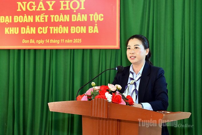 Phát biểu tại Ngày hội, bà Lê Thị Kim Dung, Phó Bí thư Thường trực Tỉnh ủy bày tỏ niềm vui khi được chung vui Ngày hội Đại đoàn kết toàn dân tộc với bà con thôn Đon Bả. Đồng chí khẳng định, đoàn kết luôn là truyền thống quý báu, là sức mạnh làm nên mọi thắng lợi của dân tộc ta, và Ngày hội không chỉ là dịp ôn lại truyền thống mà còn là hành động thiết thực để gắn kết cộng đồng, củng cố niềm tin của nhân dân đối với Đảng.