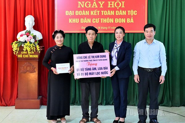 Bà Lê Thị Kim Dung cũng đề nghị cấp ủy, chính quyền xã Lâm Bình tiếp tục quan tâm, hỗ trợ để thôn Đon Bả phát triển toàn diện, kịp thời nắm bắt và giải quyết nguyện vọng chính đáng của nhân dân, tạo sự đồng thuận và củng cố niềm tin trong cộng đồng.