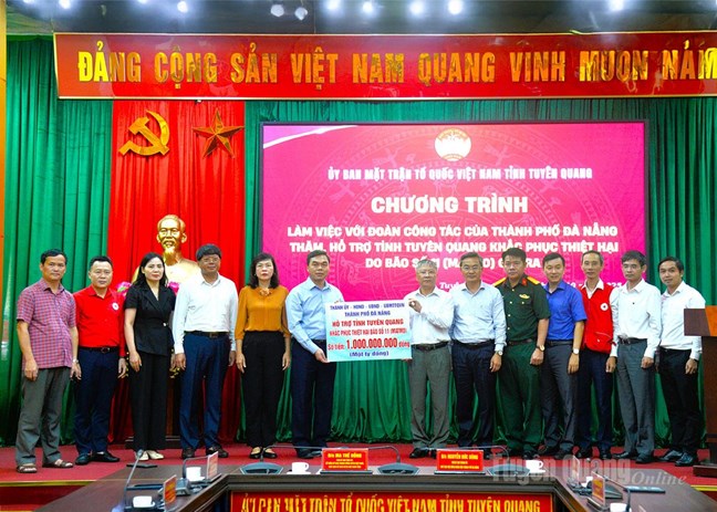 Thay mặt Thành ủy, HĐND, UBND và Ủy ban MTTQ Việt Nam thành phố Đà Nẵng, đồng chí Nguyễn Đức Dũng đã trao tặng nguồn hỗ trợ trị giá 1 tỷ đồng cho tỉnh Tuyên Quang.