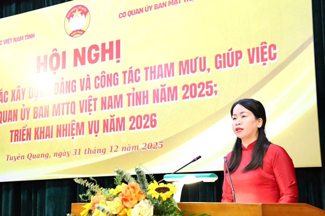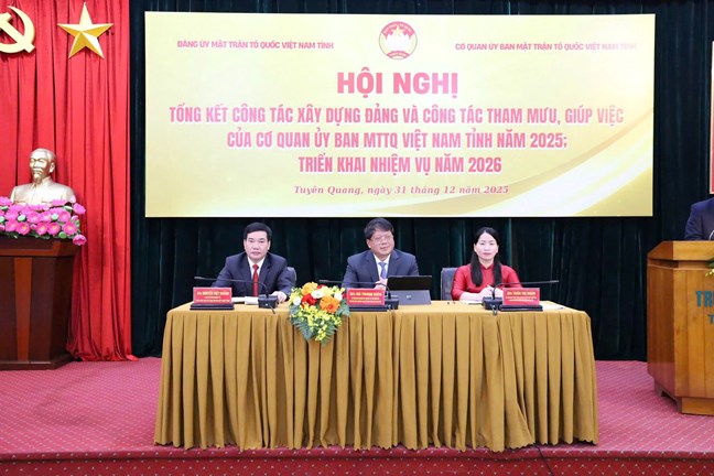 (Mặt trận) - Sáng 31/12, tại tỉnh Tuyên Quang, Ủy ban MTTQ Việt Nam tỉnh đã tổ chức Hội nghị tổng kết công tác xây dựng Đảng và công tác tham mưu, giúp việc năm 2025; triển khai nhiệm vụ năm 2026.