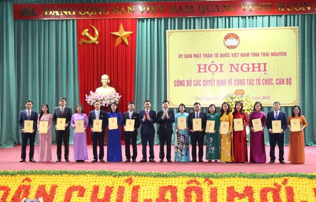 (Mặt trận) - Chiều 1/7, Ủy ban Mặt trân Tổ quốc Việt Nam tỉnh Thái Nguyên tổ chức Hội nghị công bố các quyết định về công tác tổ chức, cán bộ sau sáp nhập.