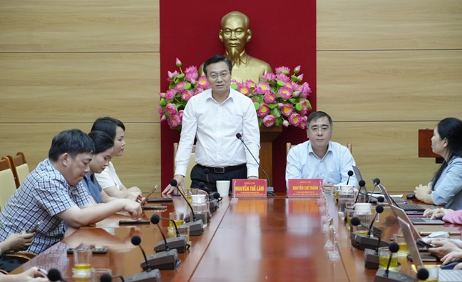 | Đồng chí Nguyễn Thế Lãm, Tỉnh uỷ viên, Giám đốc, Tổng Biên tập Báo và PTTH tỉnh phát biểu tại hội nghị. |