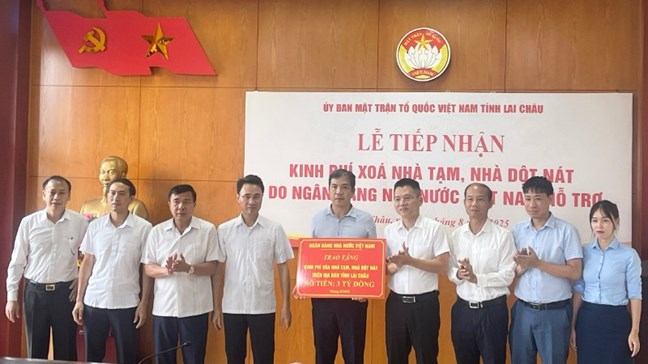 (Mặt trận) -Sáng 5/8, Ban Thường trực Ủy ban Mặt trận Tổ quốc Việt Nam tỉnh Lai Châu tổ chức tiếp nhận kinh phí hỗ trợ xóa nhà tạm, nhà dột nát trên địa bàn tỉnh Lai Châu của Ngân hàng Nhà nước chi nhánh Khu vực 3.