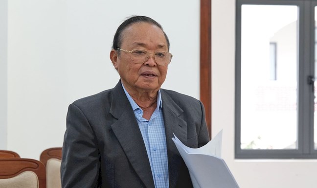 | Nguyên Chủ tịch Ủy ban MTTQ Việt Nam tỉnh Lâm Đồng Nguyễn Kim Khang góp ý tại Hội nghị |
