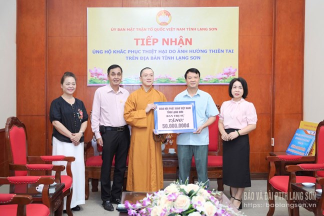 | Lãnh đạo Ủy ban MTTQ Việt Nam tỉnh Lạng Sơn tiếp nhận kinh phí hỗ trợ từ Ban Trị sự Giáo hội Phật giáo Việt Nam tỉnh Lạng Sơn |