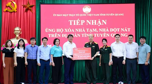 Ủy ban MTTQ Việt Nam tỉnh Tuyên Quang tiếp nhận hỗ trợ kinh phí xóa nhà tạm, nhà dột nát trên địa bàn tỉnh Tuyên Quang của Viettel Tuyên Quang.