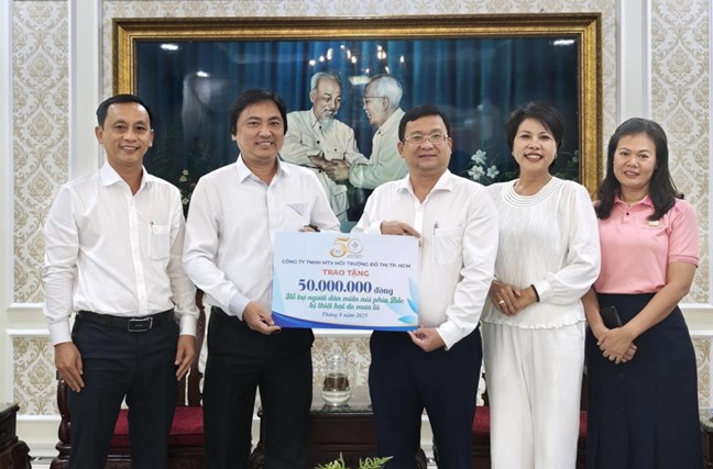 (Mặt trận) - Ngày 25/8, đoàn đại biểu Công ty TNHH MTV Môi trường đô thị TP Hồ Chí Minh, do ông Lê Công Phương, Phó Bí thư Đảng ủy, Giám đốc công ty làm trưởng đoàn, đã đến trụ sở Ủy ban MTTQ Việt Nam TP Hồ Chí Minh để đóng góp số tiền 50 triệu đồng, ủng hộ đồng bào các tỉnh phía Bắc khắc phục hậu quả thiên tai, ổn định cuộc sống.