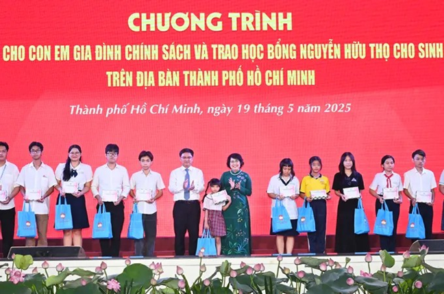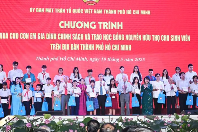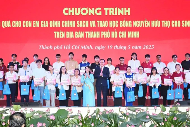Tại buổi lễ, Ủy ban MTTQ Việt Nam TPHCM – Ban vận động, quản lý và sử dụng Quỹ “Vì người nghèo” TPHCM đã trao 33 suất học bổng Nguyễn Hữu Thọ. Bắt đầu từ năm 2001, chương trình đã chăm lo, tiếp sức cho hàng trăm ngàn học sinh, sinh viên có hoàn cảnh khó khăn, giúp các em được tiếp tục đến trường và thực hiện trọn vẹn ước mơ của các em.
