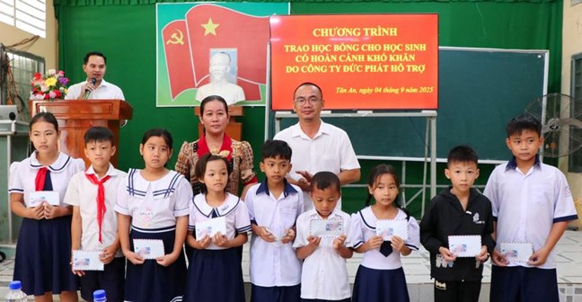 (Mặt trận) - Ngày 4/9, Ban Thường trực Ủy ban MTTQ Việt Nam tỉnh phối hợp với Công ty Đức Phát tổ chức trao 100 suất học bổng cho học sinh nghèo, học sinh hoàn cảnh khó khăn tại 3 xã: Tân An, Bình Phú và Long Vĩnh.
