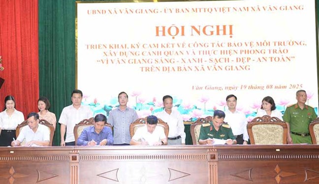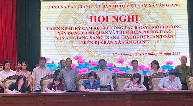 Tại hội nghị, các thôn, tổ dân phố, trường học và một số đơn vị, doanh nghiệp trong xã ký cam kết về công tác bảo vệ môi trường, xây dựng cảnh quan và thực hiện phong trào “Vì Văn Giang sáng – xanh – sạch – đẹp – an toàn”.