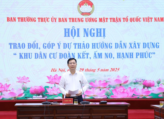 Dự thảo Hướng dẫn xây dựng khu dân cư đoàn kết, ấm no, hạnh phúc với 3 nội dung cơ bản: khu dân cư đoàn kết; ấm no; hạnh phúc và 5 tiêu chí: Khu dân cư có ít nhất một mô hình tự quản được Chủ tịch UBND cấp xã, công nhận hoạt động hiệu quả; Khu dân cư không có mâu thuẫn, tranh chấp kéo dài, khiếu kiện đông người vượt cấp trái quy định của pháp luật; Khu dân cư không còn hộ nghèo, cận nghèo thấp hơn tiêu chí chung; Khu dân cư có hạ tầng giao thông, các công trình, thiết chế văn hóa phục vụ sinh hoạt, đời sống đạt tiêu chí sáng, xanh, sạch, đẹp; Ban Công tác Mặt trận và các chi đoàn, chi hội của tổ chức chính trị - xã hội hoạt động tốt, đạt trong sạch, vững mạnh.