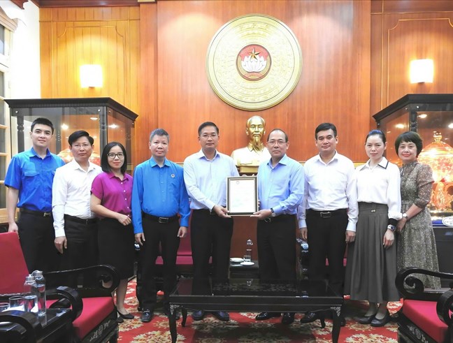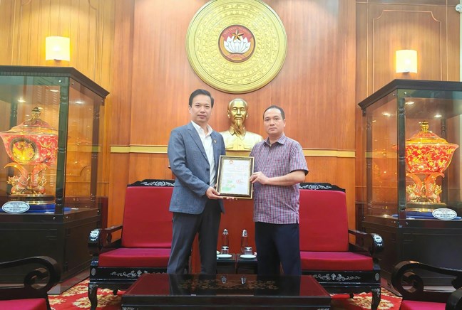 | Phó Chủ tịch UBTƯ MTTQ Việt Nam Hoàng Công Thủy trao thư cảm ơn Tổng Công ty Sông Đà |