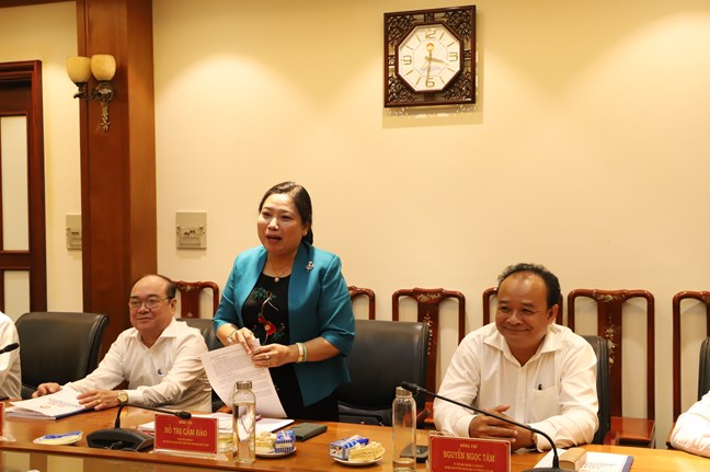 | Bà Hồ Thị Cẩm Đào, Phó Bí thư Thành ủy, Chủ tịch Ủy ban MTTQ Việt Nam thành phố Cần Thơ phát biểu tại cuộc làm việc |