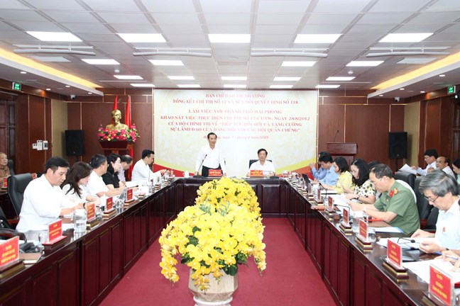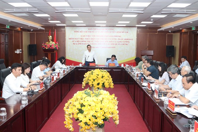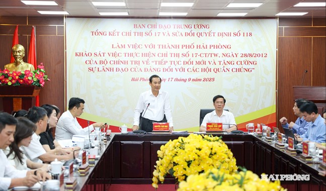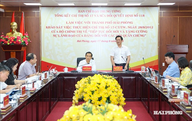 Trong khuôn khổ cuộc làm việc, các đại biểu đánh giá tình hình, kết quả quá trình triển khai thực hiện Chỉ thị số 17 trên địa bàn thành phố Hải Phòng; những hạn chế, tồn tại, nguyên nhân và kinh nghiệm trong quá trình triển khai thực tiễn. Các ý kiến cũng đề xuất giải pháp cần thực hiện trong Chỉ thị mới của Bộ Chính trị nhằm đổi mới, tăng cường sự lãnh đạo của Đảng đối với các hội quần chúng trong tình hình mới và nêu kiến nghị sửa đổi, bổ sung nội dung Quyết định số 118.