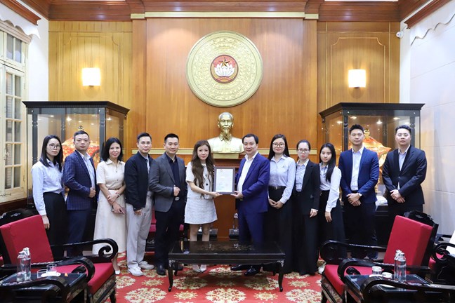 | Ông Vũ Văn Tiến, Ủy viên Đoàn Chủ tịch, Trưởng Ban Tuyên giáo Cơ quan Ủy ban Trung ương MTTQ Việt Nam trao thư cảm ơn Tập đoàn Tân Á Đại Thành |