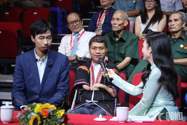 | Tại chương trình, ca sĩ Đen Vâu đã xin được đồng hành cùng anh Nay Djrueng để gieo nên một mùa khai giảng đủ đầy cho học trò vùng sâu, vùng xa. Ảnh: Báo Quân đội Nhân dân |